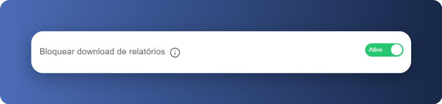 Quando essa opção está ativada, usuários que possuem o perfil “gerente” ficam impedidos de realizar o download dos relatórios da conta. Essa configuração é útil para reforçar controles internos e garantir que apenas perfis autorizados tenham acesso aos dados exportáveis da plataforma.