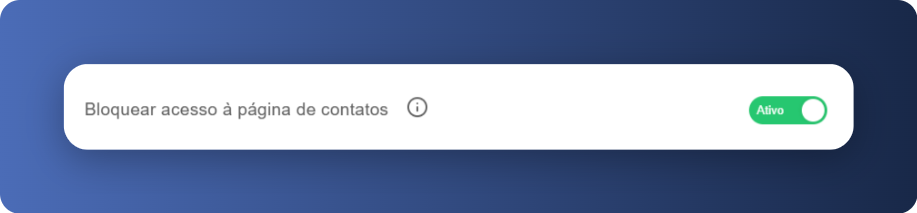 O bloqueio de acesso a contatos permite restringir a visualização da lista de contatos para operadores, garantindo que apenas informações necessárias estejam disponíveis para quem está atendendo.