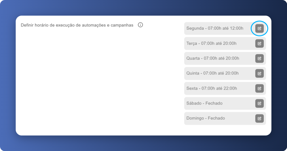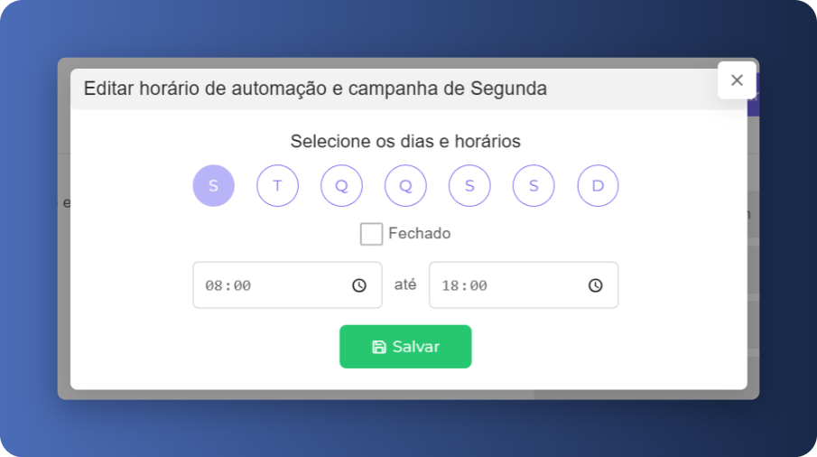 É possível configurar os horários de atendimento para monitorar e melhorar métricas importantes como o Tempo de Primeira Resposta (TMR) e o Tempo de Atendimento Total (TMA).