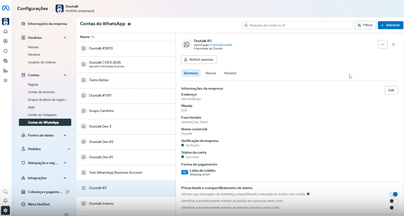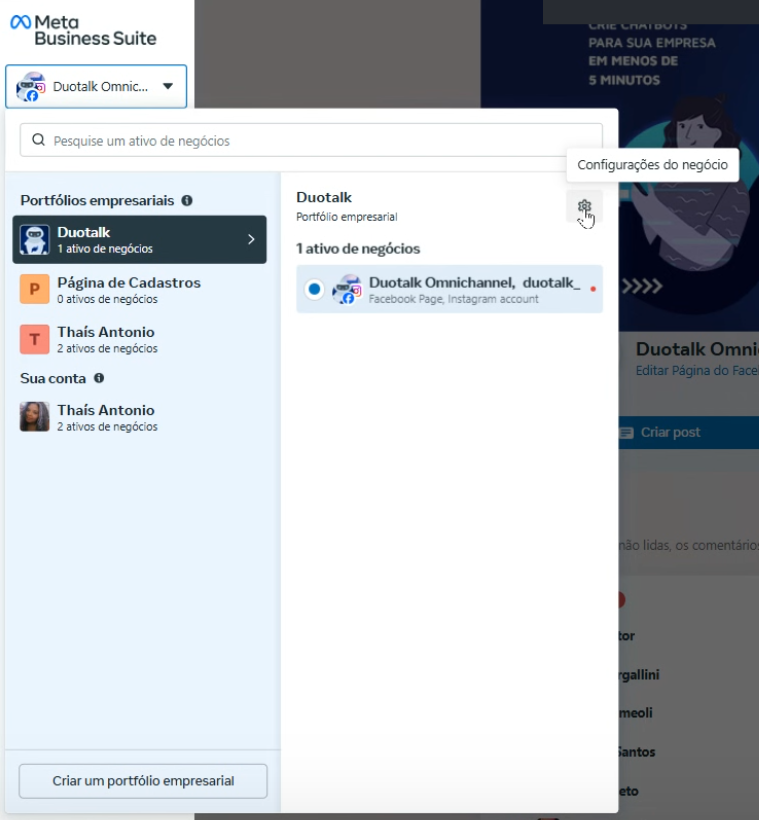 Acesse o seu ambiente do Meta Business Suite e selecione o seu portfólio.