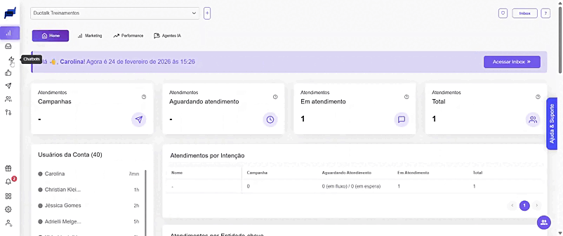 Acesse a aba Chatbot ;