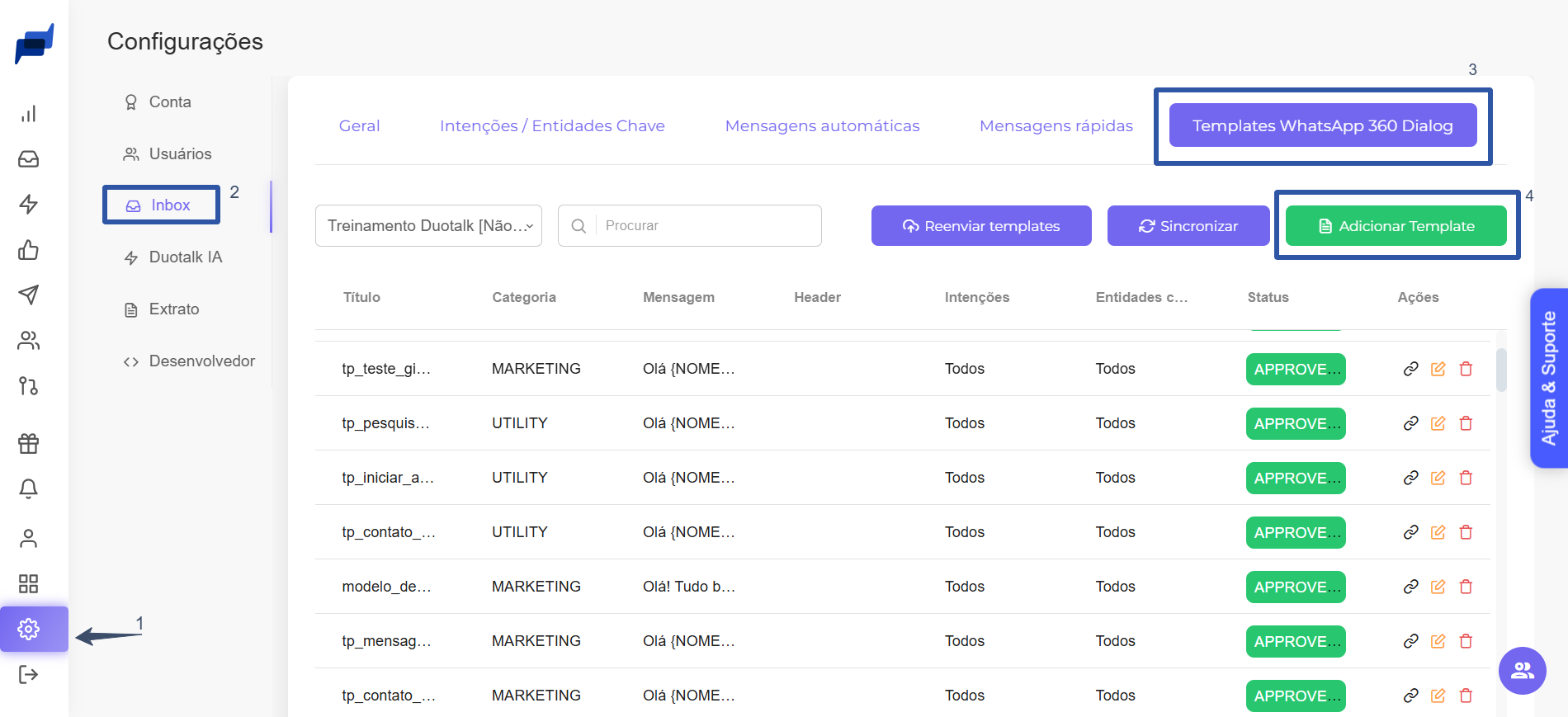 Agora que está tudo pronto, você já pode criar a sua campanha com facilidade. Basta seguir o passo a passo clicando aqui! Se surgir qualquer dúvida durante o envio ou se notar algo fora do esperado, pode nos acionar! É só acessar o canal de Ajuda & Suporte dentro da Duotalk.